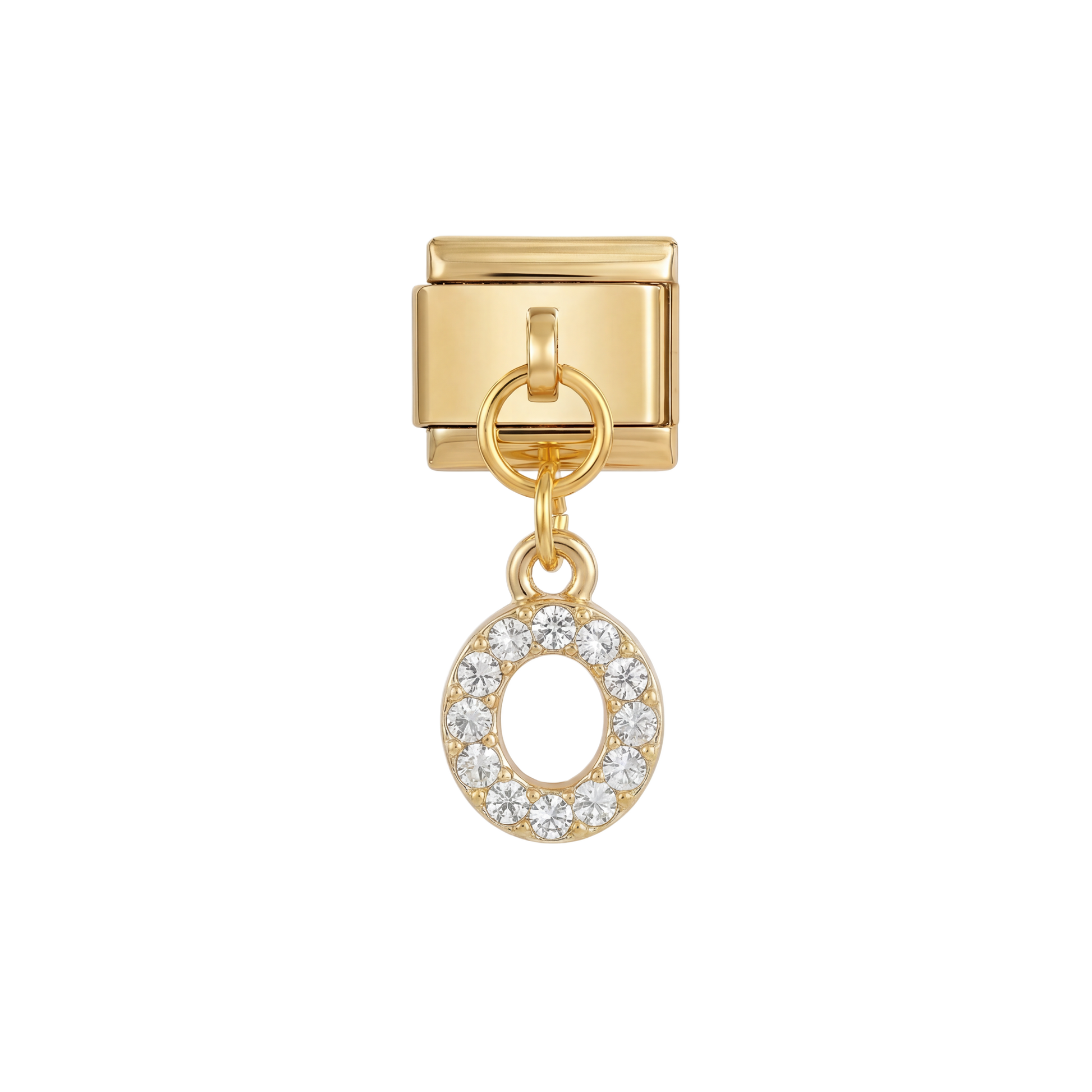 Letter O with stones, Hanging, on Gold